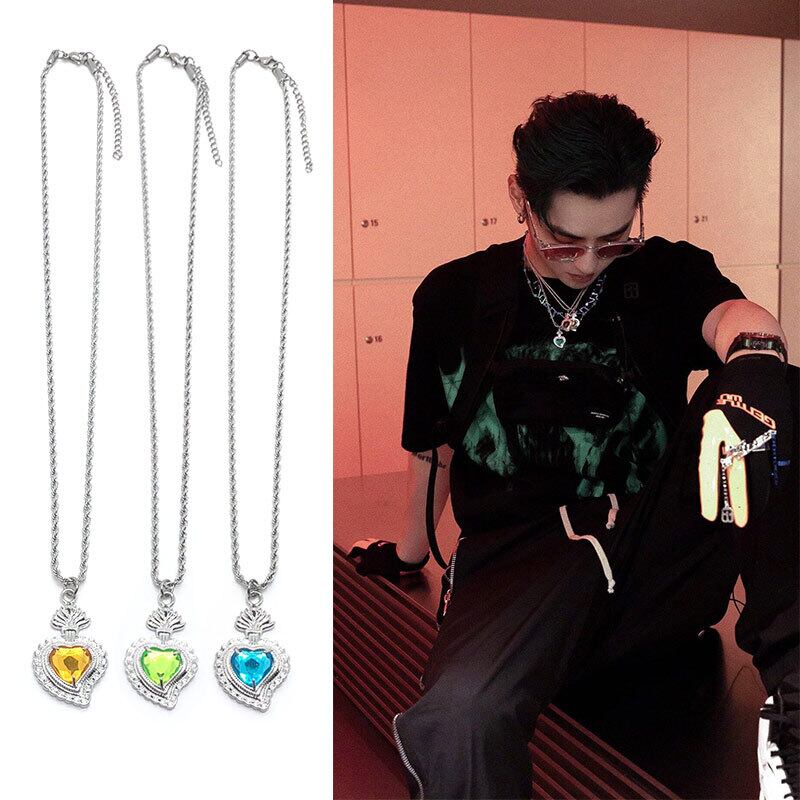 色:ウー・イーファンゴールドラブネックレス1個,Bウーイーファンライトグリーンラブネックレス1,Cウーイーファンライトブルーラブネックレス1,DWuYifan3ゴールド、グリーン、ブルーのラブネックレス
