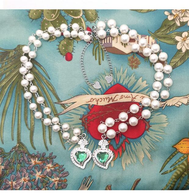 Li SiDanni ダニエラワン愛用グリーンラブネックレスパール ハートクリスタルチェーン ω ビジューラインストーン CHROME HEARTS goro's Justin Davis PUERTA DEL SOL CRAZY PIG THE GREAT FROG Cod 韓流スター 中国アイドル R1SE Cpop Kpop チャイボーグ メイカンフェンダイ 中華 フラワーノーズ Flower Knows ZEESEA ズーシー ファーシーツー Flor 29A31205835104