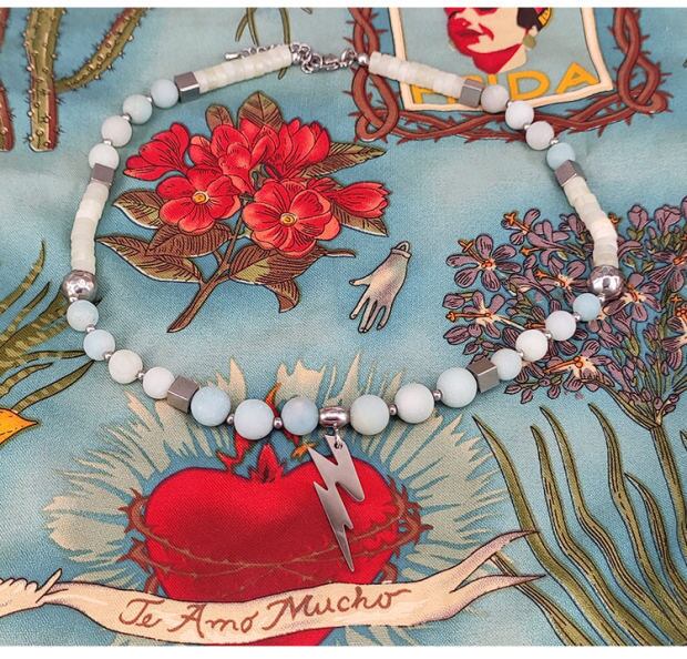 色:ウー・イーファン天然石ライトニングネックレス1,Bウーイーファンジェイドスチールストーンフラワーライトニングネックレス1