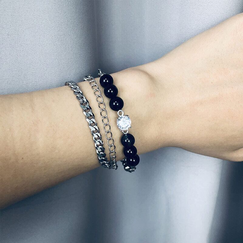 色:張Yixing黒と白の石のチタン鋼のネックレス1