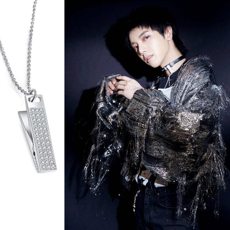 海外アイドルフアチェンユー同型のシルバークリップネックレス 黒革 チェーン アクセサリー ラインストーン CHROME HEARTS goro's LONE ONES Justin Davis PUERTA DEL SOL CRAZY PIG THE GREAT FROG Cod 韓流スター 中国アイドル R1SE Cpop Kpop チャイボーグ メイカンフェンダイ 中華 フラワーノーズ Flower Knows ZEESEA ズーシー ファーシーツー Flor 29A248