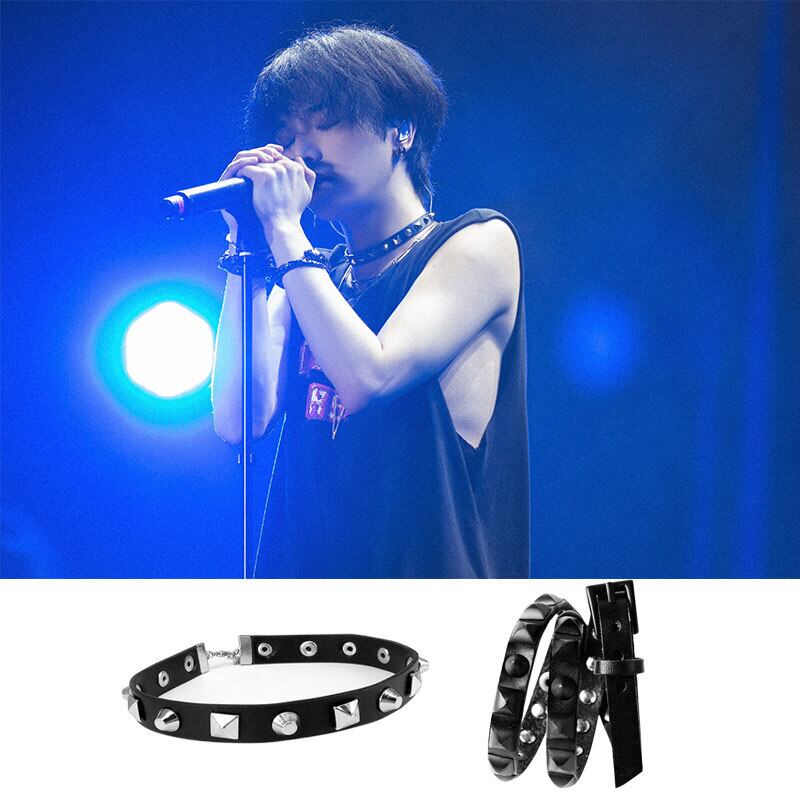 海外アイドルフアチェンユーと同型のブラックレザーリベットブレスレット ブラックオレンジレザーネックレス CHROME HEARTS goro's LONE ONES Justin Davis PUERTA DEL SOL CRAZY PIG THE GREAT FROG Cod 韓流スター 中国アイドル R1SE Cpop Kpop チャイボーグ メイカンフェンダイ 中華 フラワーノーズ Flower Knows ZEESEA ズーシー ファーシーツー Flor 29A62093654542