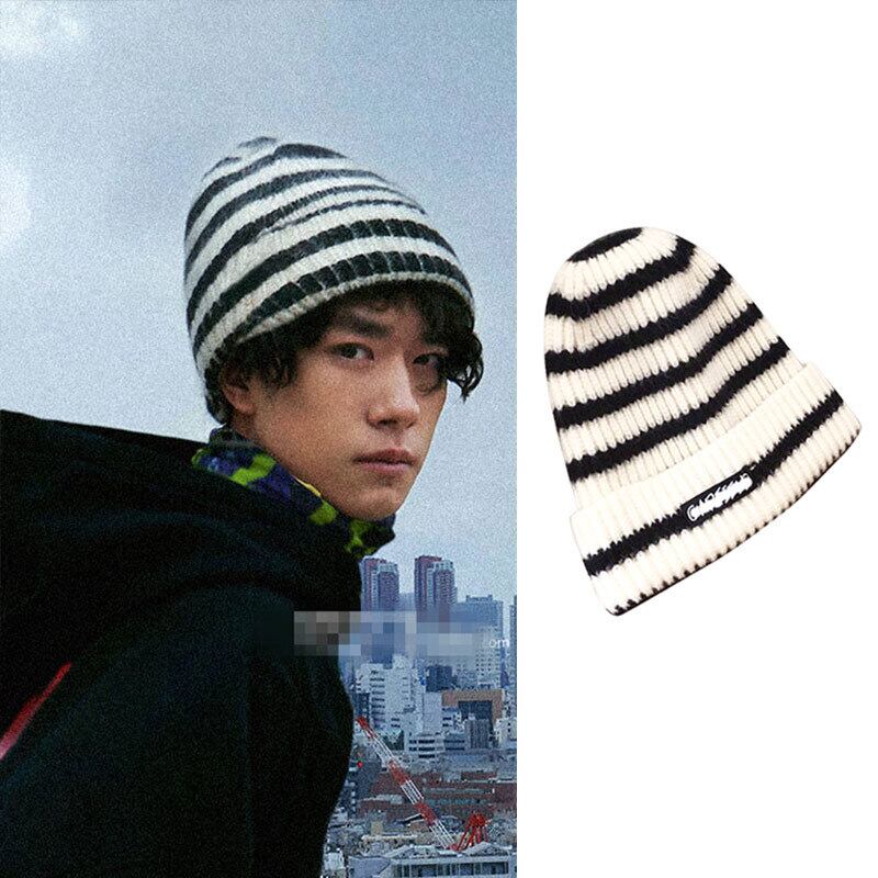 海外アイドルYiyangQianxiと同型のブラックホワイトストライプニット帽子 黒白ウール帽子 CHROME HEARTS goro's LONE ONES Justin Davis PUERTA DEL SOL CRAZY PIG THE GREAT FROG Cod 韓流スター 中国アイドル R1SE Cpop Kpop チャイボーグ メイカンフェンダイ 中華 フラワーノーズ Flower Knows ZEESEA ズーシー ファーシーツー Flor 29A2880562211