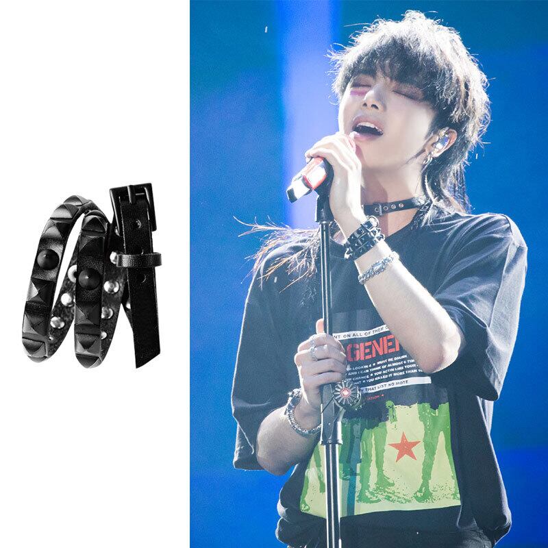 海外アイドルフアチェンユーと同型のブラックレザーリベットブレスレット アクセサリー CHROME HEARTS goro's LONE ONES Justin Davis PUERTA DEL SOL CRAZY PIG THE GREAT FROG Cod 韓流スター 中国アイドル R1SE Cpop Kpop チャイボーグ メイカンフェンダイ 中華 フラワーノーズ Flower Knows ZEESEA ズーシー ファーシーツー Flor 29A94444178423