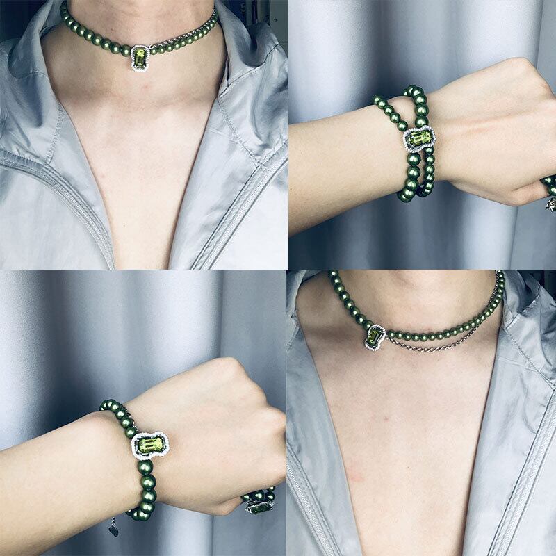 グリーンネックレス チェーン レース チョーカー ペンダント ω ビジュー 宝石 ラインストーン CHROME HEARTS goro's LONE ONES Justin Davis PUERTA DEL SOL CRAZY PIG THE GREAT FROG Cod 韓流スター 中国アイドル R1SE Cpop Kpop チャイボーグ メイカンフェンダイ 中華 フラワーノーズ Flower Knows ZEESEA ズーシー ファーシーツー Flor 29A11692802424