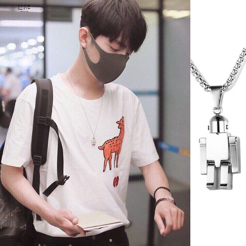海外タレントXiaoZhanと同型のロボットネックレス-ホワイトスチールカラー ω ビジュー 宝石 ラインストーン CHROME HEARTS goro's LONE ONES Justin Davis PUERTA DEL SOL CRAZY PIG THE GREAT FROG Cod 韓流スター 中国アイドル R1SE Cpop Kpop チャイボーグ メイカンフェンダイ 中華 フラワーノーズ Flower Knows ZEESEA ズーシー ファーシーツー Flor 29A28542128070