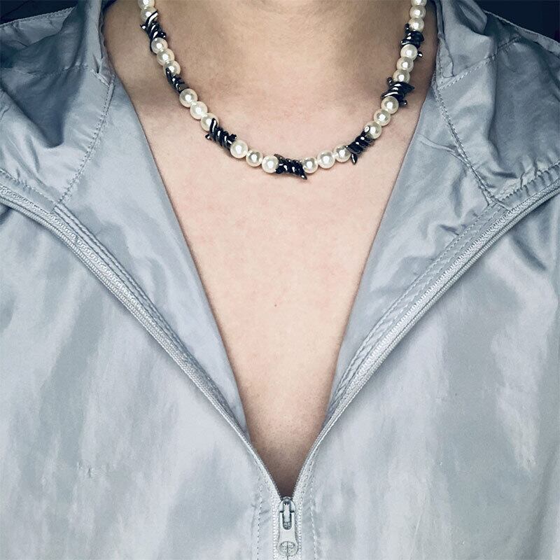 色:とげと棘のあるシェルビーズネックレス1