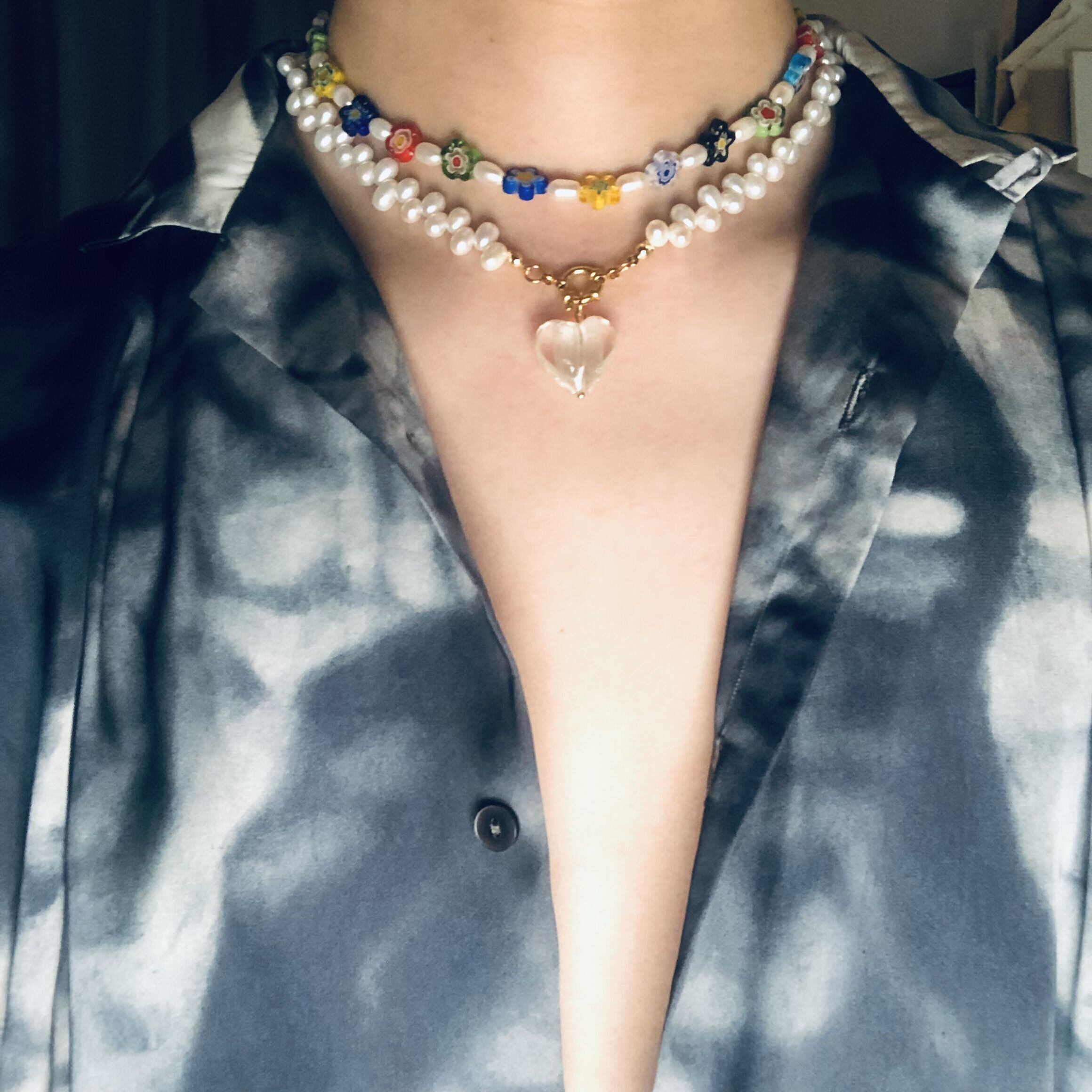 色:クリスタルラブパールネックレス1,Bglフラワー淡水パールネックレス1,Cクリスタルラブハート+カラーグレーズパール2個
