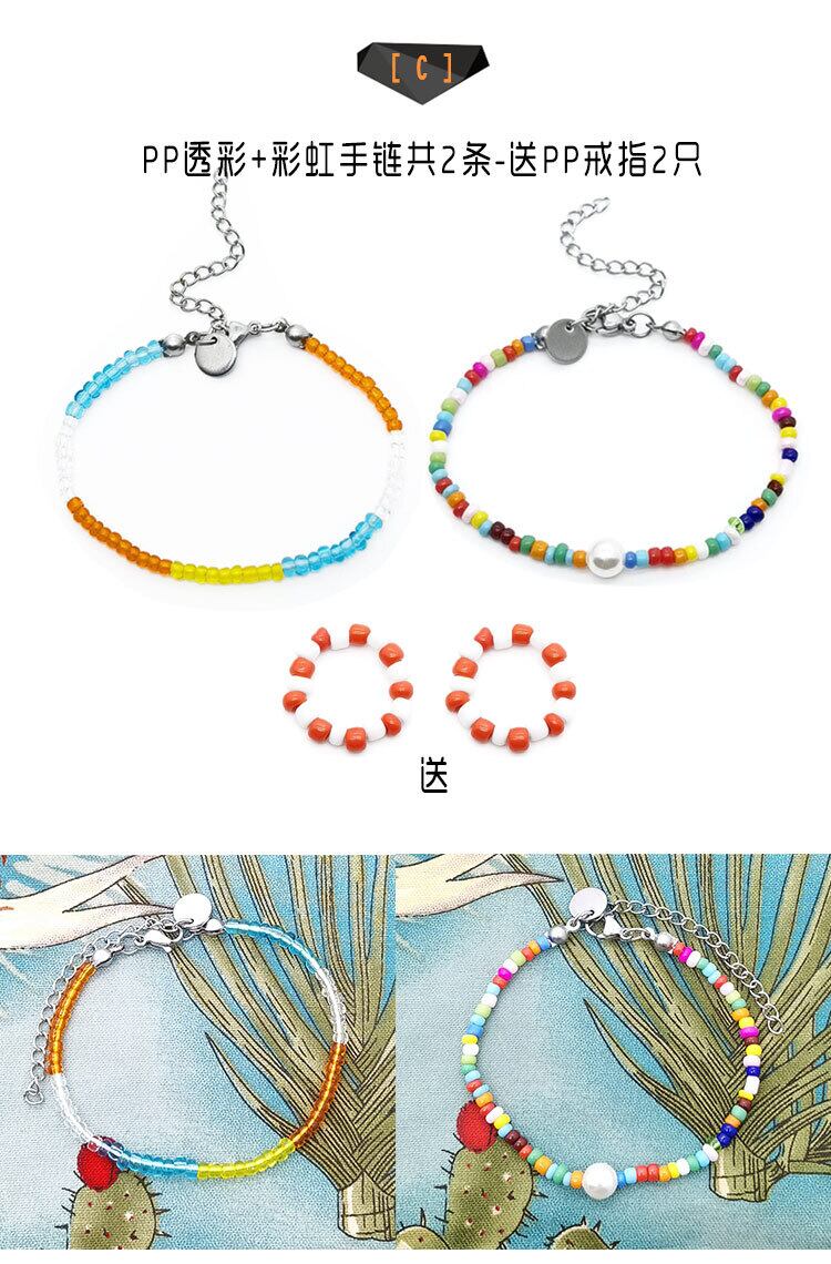 色:1PP透明カラービーズブレスレットフリー1PPリング,1PPレインボーパールブレスレット-無料1PPリング,PP透明+レインボー2個-無料の2PPリング