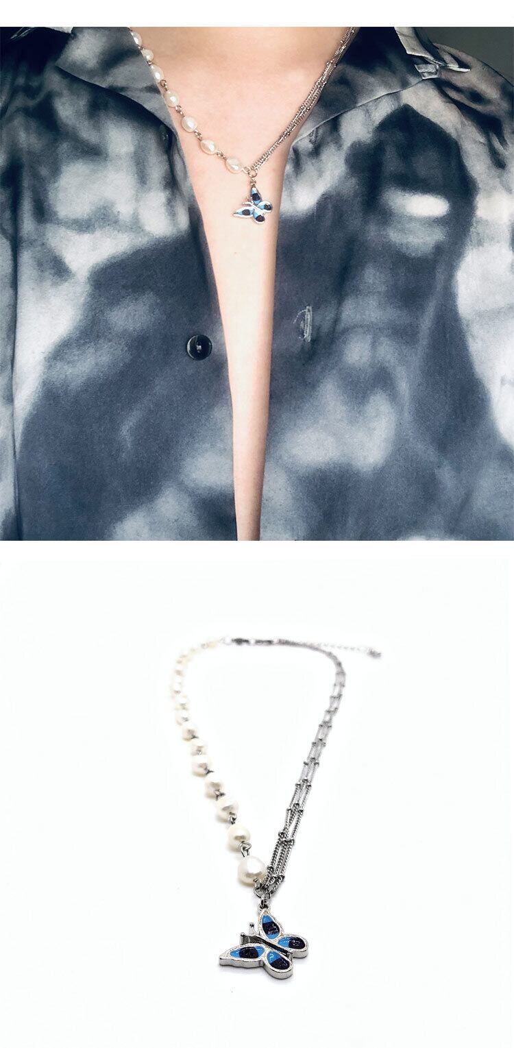 ブルーButterflyデザイン パールネックレス レース 真珠 ステッチ ω ビジュー 宝石 ラインストーン CHROME HEARTS goro's LONE ONES Justin Davis PUERTA DEL SOL CRAZY PIG THE GREAT FROG Cod 韓流スター 中国アイドル R1SE Cpop Kpop チャイボーグ メイカンフェンダイ 中華 フラワーノーズ Flower Knows ZEESEA ズーシー ファーシーツー Flor 29A42525396784