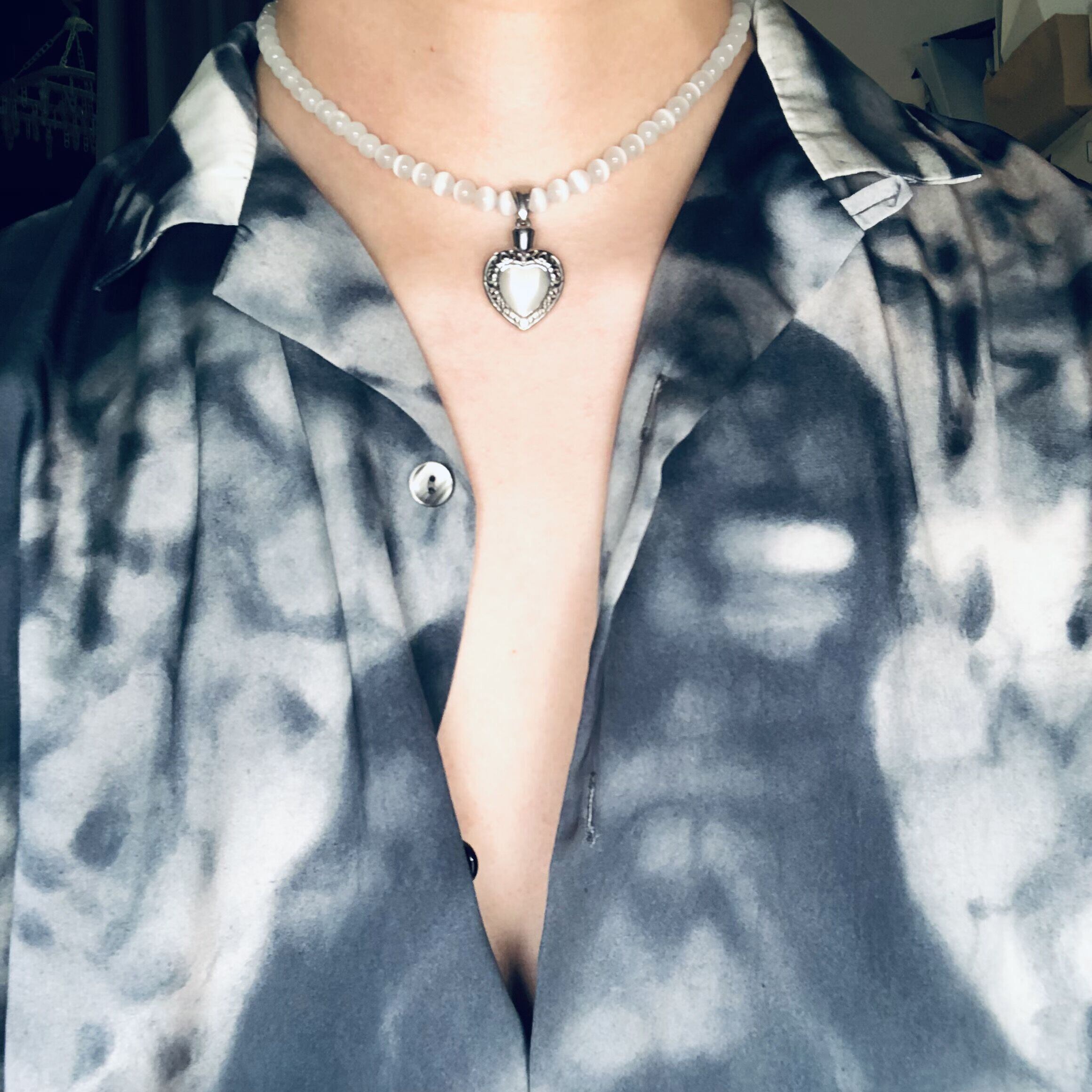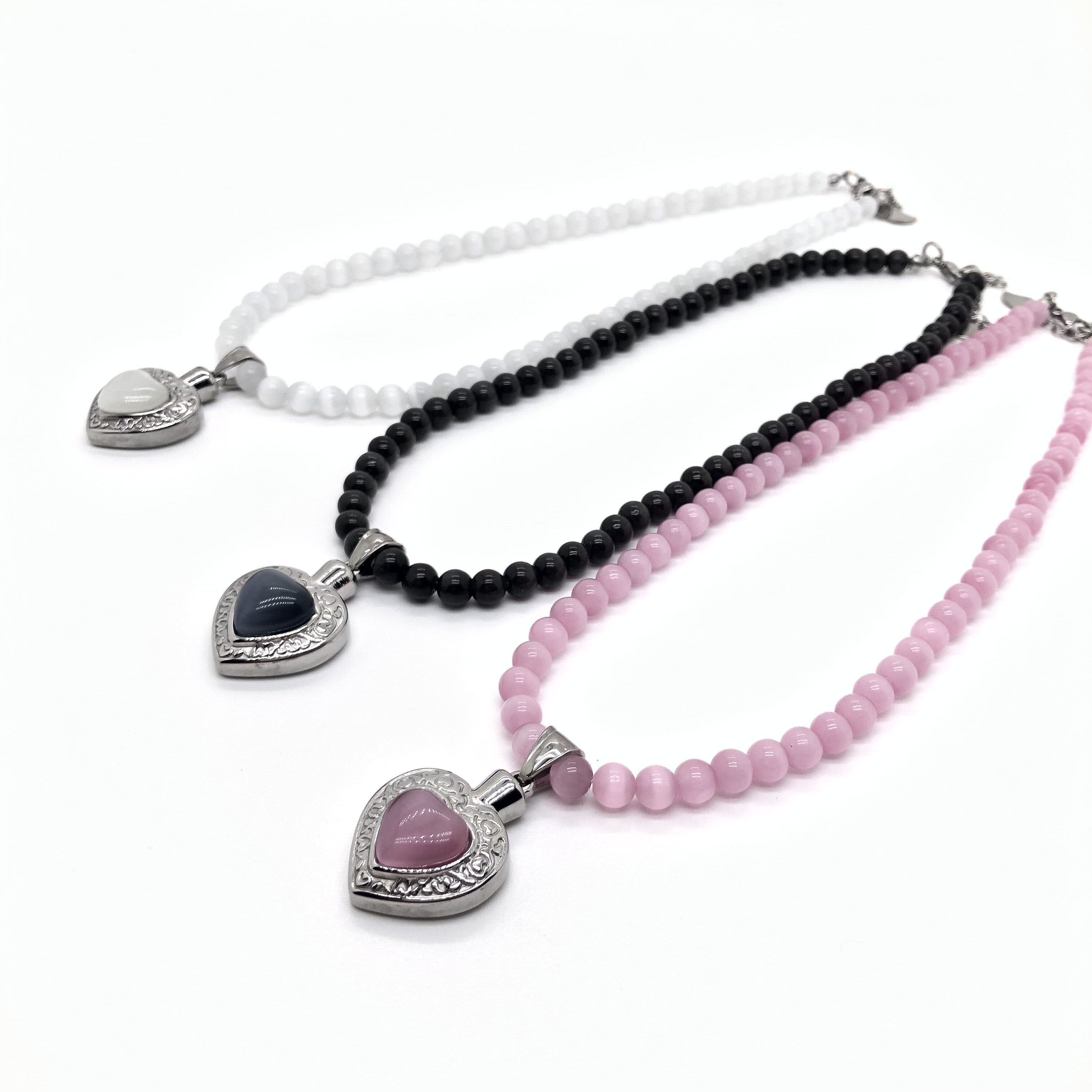 色:シルバーカービングホワイトジェムストーンラブハートホワイトビーズネックレス1,Bシルバー刻まれたピンクジェムストーンラブピンクビーズネックレス1,Cシルバーカービンググレージェムストーンラブハートブラックビーズネックレス1,Dシルバー刻まれたホワイトピンクグレーラブネックレスセット3