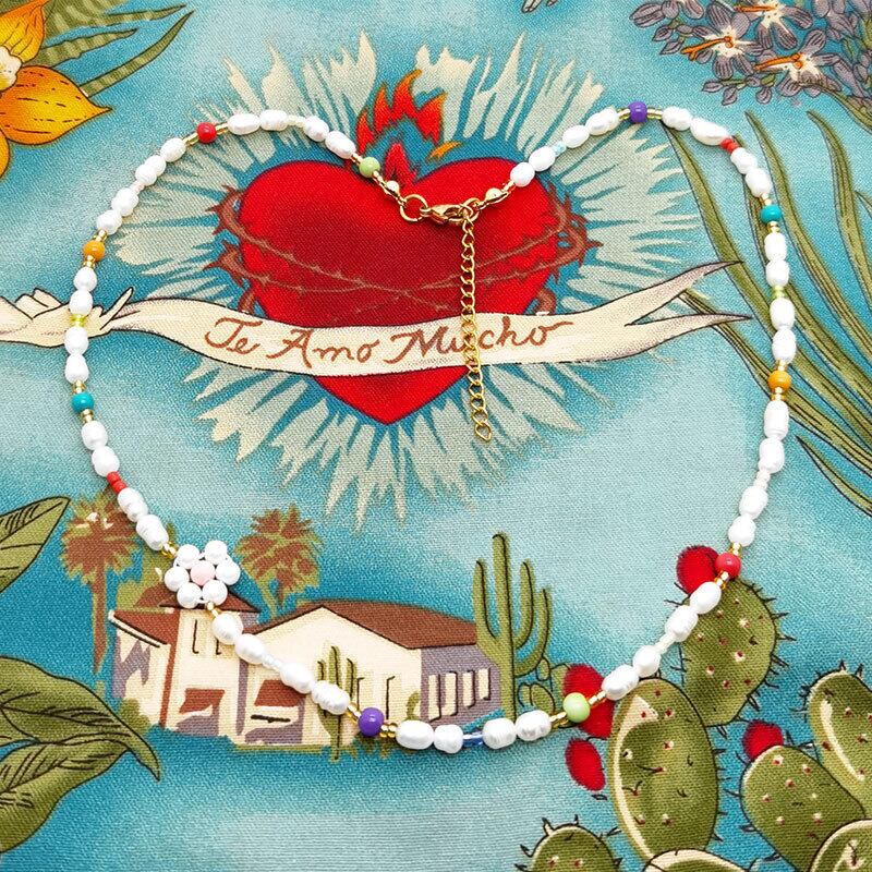 色:リサナチュラル淡水パールカラーフラワーネックレス1