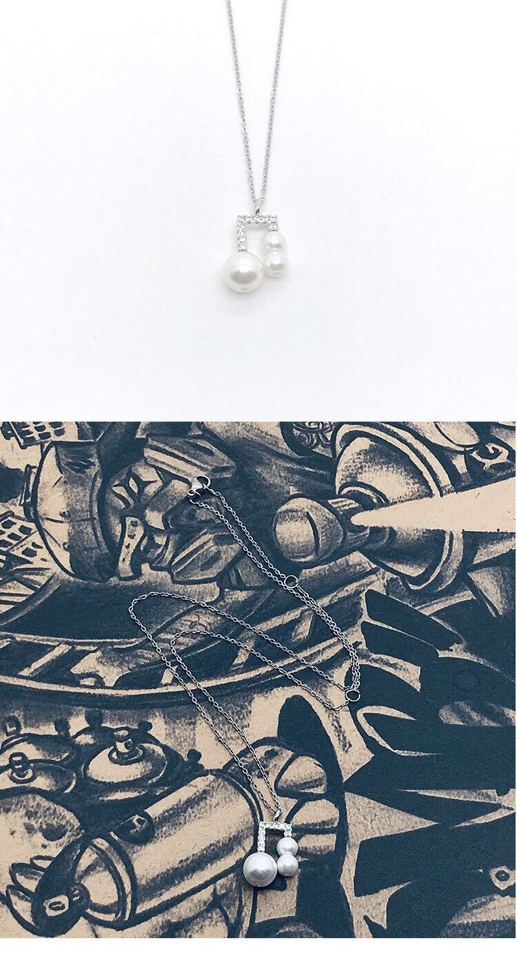 色:ZZHパールジルコン音符ネックレス1,1BZZHglパールネックレス,CZZHパールロングチェーン+パールノート合計2