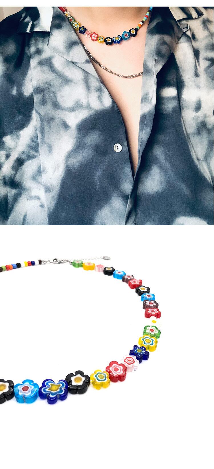 色:ディリレバカラーグレーズフラワーカラービーズネックレス1